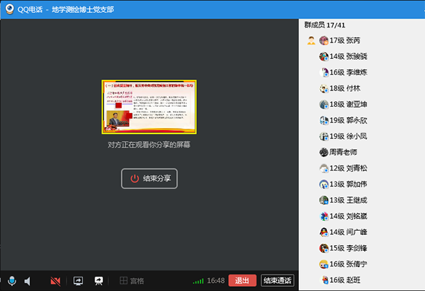 博士测绘党支部在支部qq群内召开“深化理论认识,夺取抗疫胜利”专题微党课学习,党课由支部书记张芮主讲。