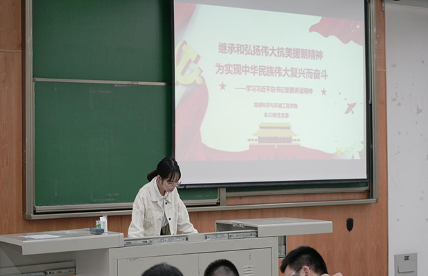 本20级党支部在X4352教室开展了“知党史,跟党走”主题党日活动暨“继承和弘扬伟大抗美援朝精神”主题教育。活动由郑文娇同志主持,本20级辅导员徐惟微及本支部入党积极分子参与。