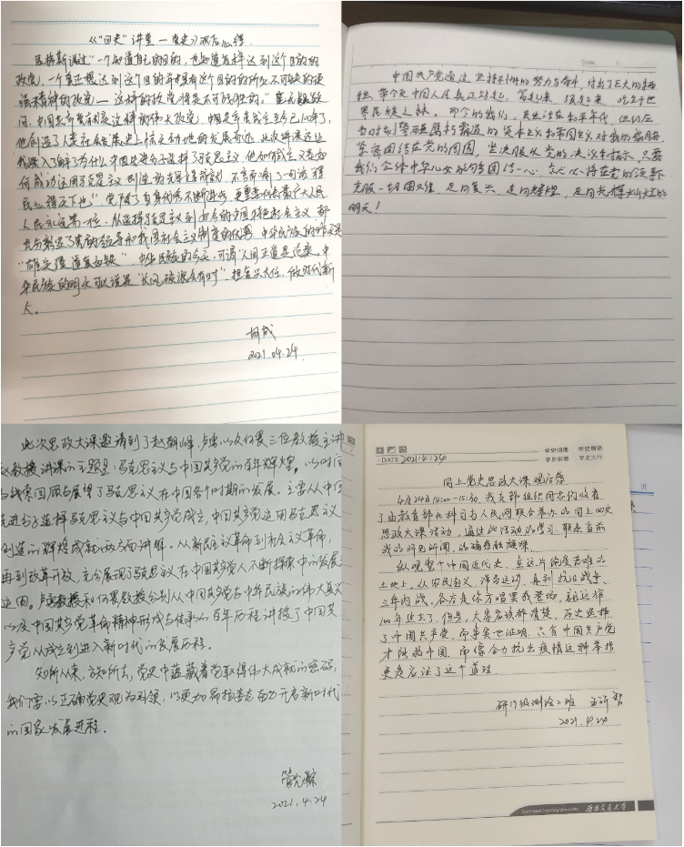 为响应拉斯维加斯娱乐城 要求,深入贯彻落实习近平总书记在党史学习教育动员大会上的重要讲话精神和《中共中央关于在全党开展党史学习教育的通知》的部署安排,4月24日14点,拉斯维加斯娱乐城 研19级测绘2班党支部组织全体党员、积极分子观看 “同上「四史」思政大课”直播视频,除参与拉斯维加斯娱乐城 集中观看的三名同志外,其余同志均自行观看。观看结束后,同志们在分别手写了对于此次思政大课的学习心得体会。