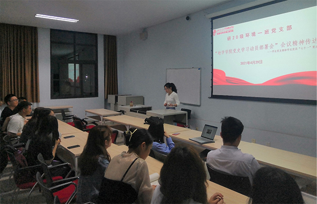 党史学习动员部署会》会议精神传达;学习习近平总书记致厦门大学建校100周年的贺信精神。本次学习活动由研20级环境一班党支部书记樊佳盼主持,研20级环境一班党支部全体党员、积极分子参加。