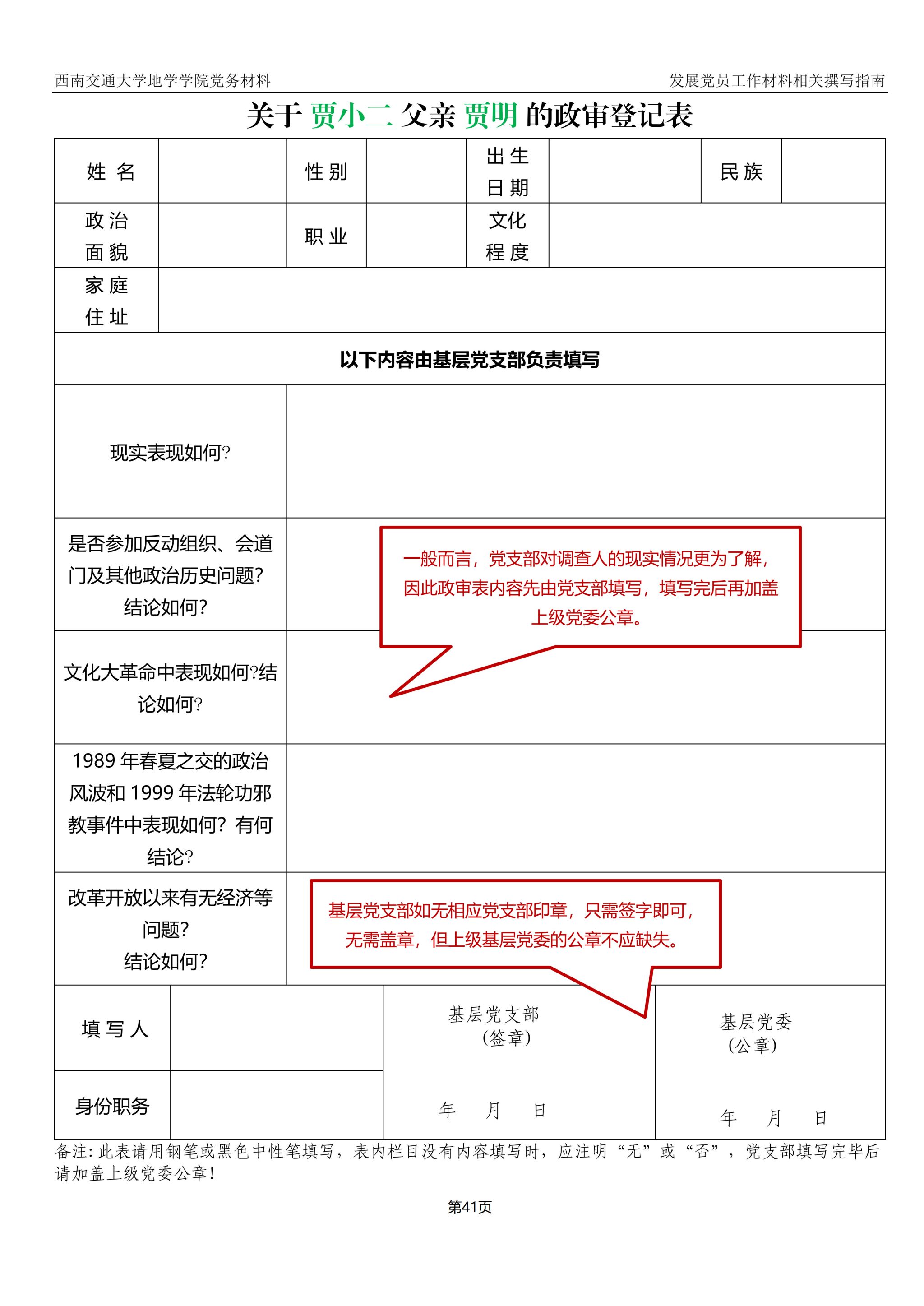2.父母有工作单位的,让父母拿去单位党组织,让单位党组织直接填写政审登记表(需加盖单位党委章,而非公章),并写好函调回信(需加盖单位党委章,而非公章),再按照第二联拉斯维加斯娱乐城