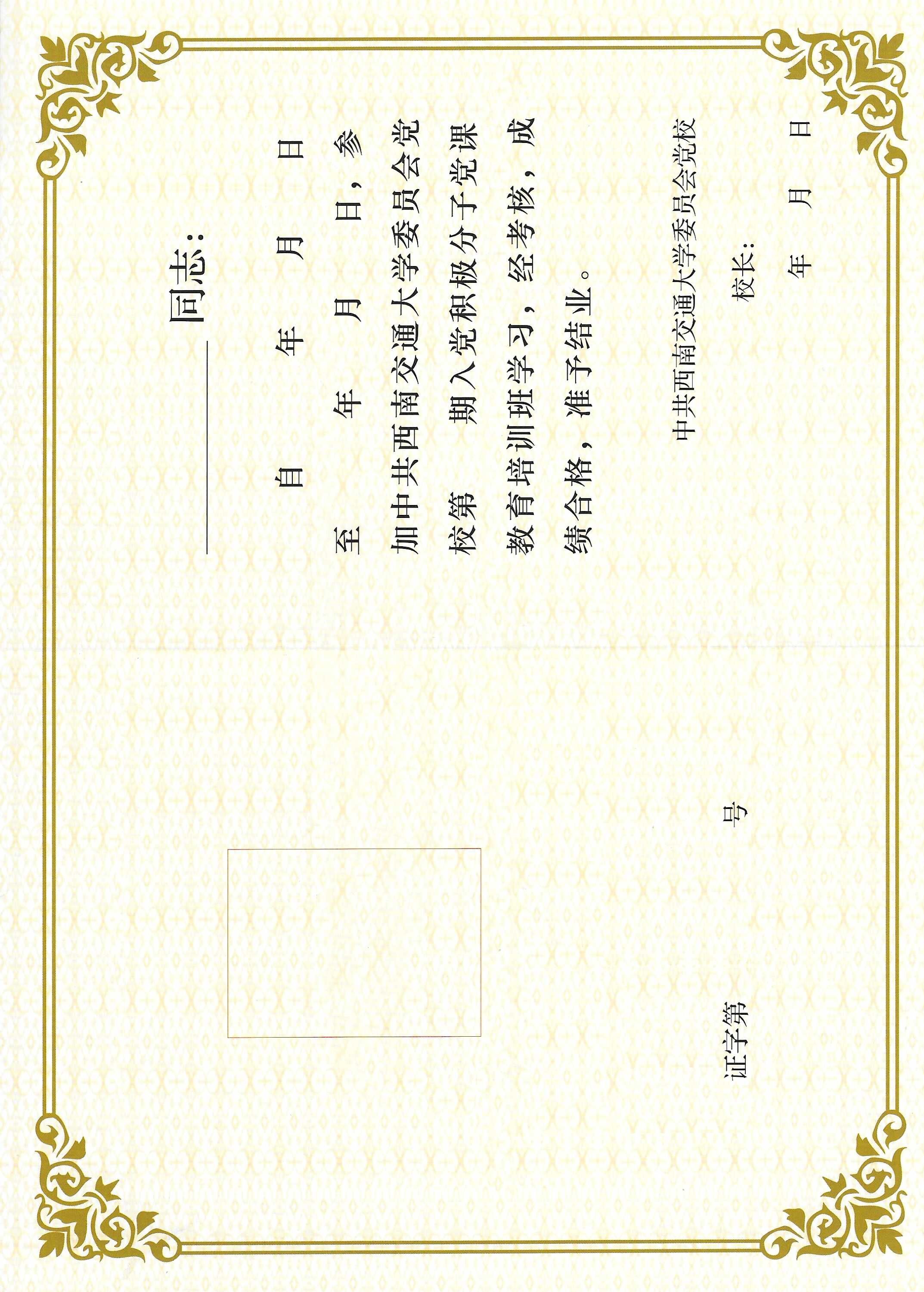 入党积极分子培训班结业证