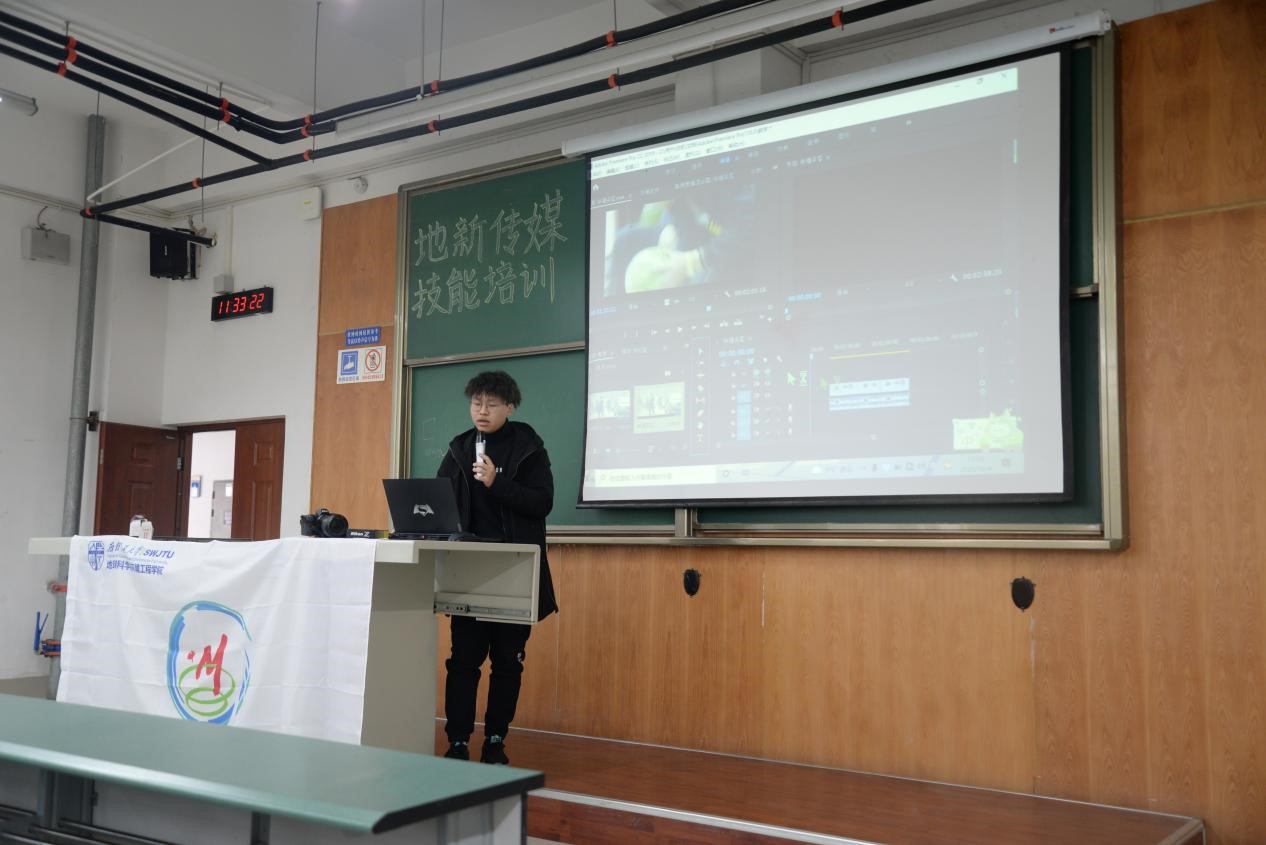 地新传媒技术顾问王纬和技术部部长姚嘉分别进行图片处理和视频剪辑方面的技能培训,并在现场演示操作。