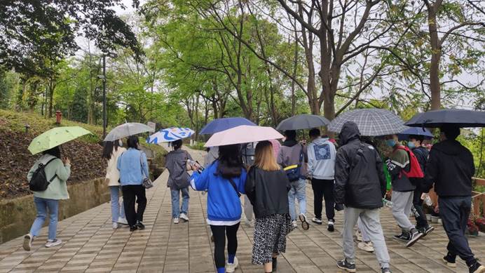 研21级测绘4班同学在班长陈雅雪及班委成员姜庆玲、陈樟锴、张成利、温磊的组织下, 走出寝室、走下网络,来到位于新都区的成都植物园进行参观学习。