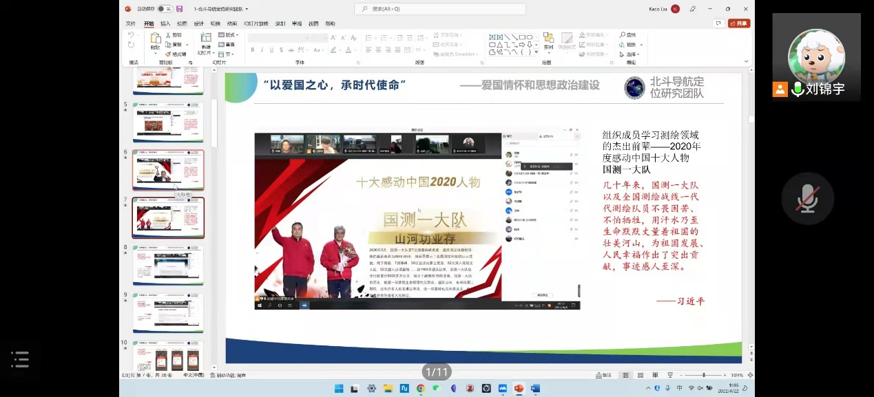 部分团支部采取线上腾讯会议的方式,开展讲座、观看红色电影、学习习近平总书记系列重要讲话等实践团日活动。回顾历史,尤其是近代史,青年学子们是社会进步,拯救国家于水火的重要力量,可以看到自五四运动以来,无数的中国青年,为了拯救生活在水深火热之中的中国同胞,为了在列强侵略下实现民族的独立,为了在满目疮痍的基础上实现国家富强而义无反顾、前赴后继,无论在新民主主义革命时期还是在新中国成立后的社会主义革命和建设时期,青年群体一直都被看作是革命的先锋队、国家建设的主力军,因此,毛主席也曾盛赞:青年是早晨八九点钟的太阳,所以,作为新时代的大学生,也应该坚定做到,敢于担当、勇于奋斗,努力做一名在新时代具有责任意识和担当精神的优秀大学生,做一名始终跟随党,拥护党,坚持维护党的权威,将“守初心、担使命”贯彻落实到我们的学习与生活中,切实承担起历史的使命和时代的责任的合格青年大学生。