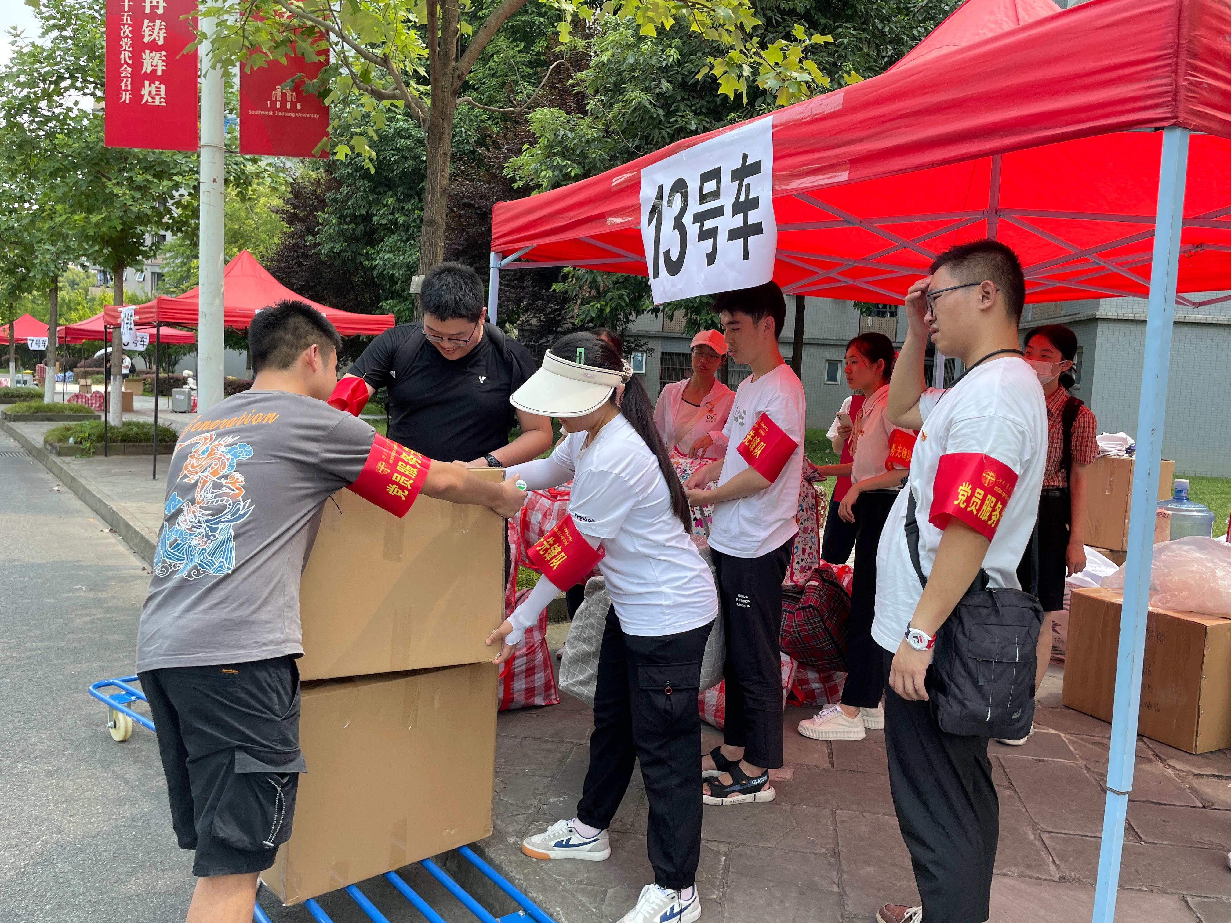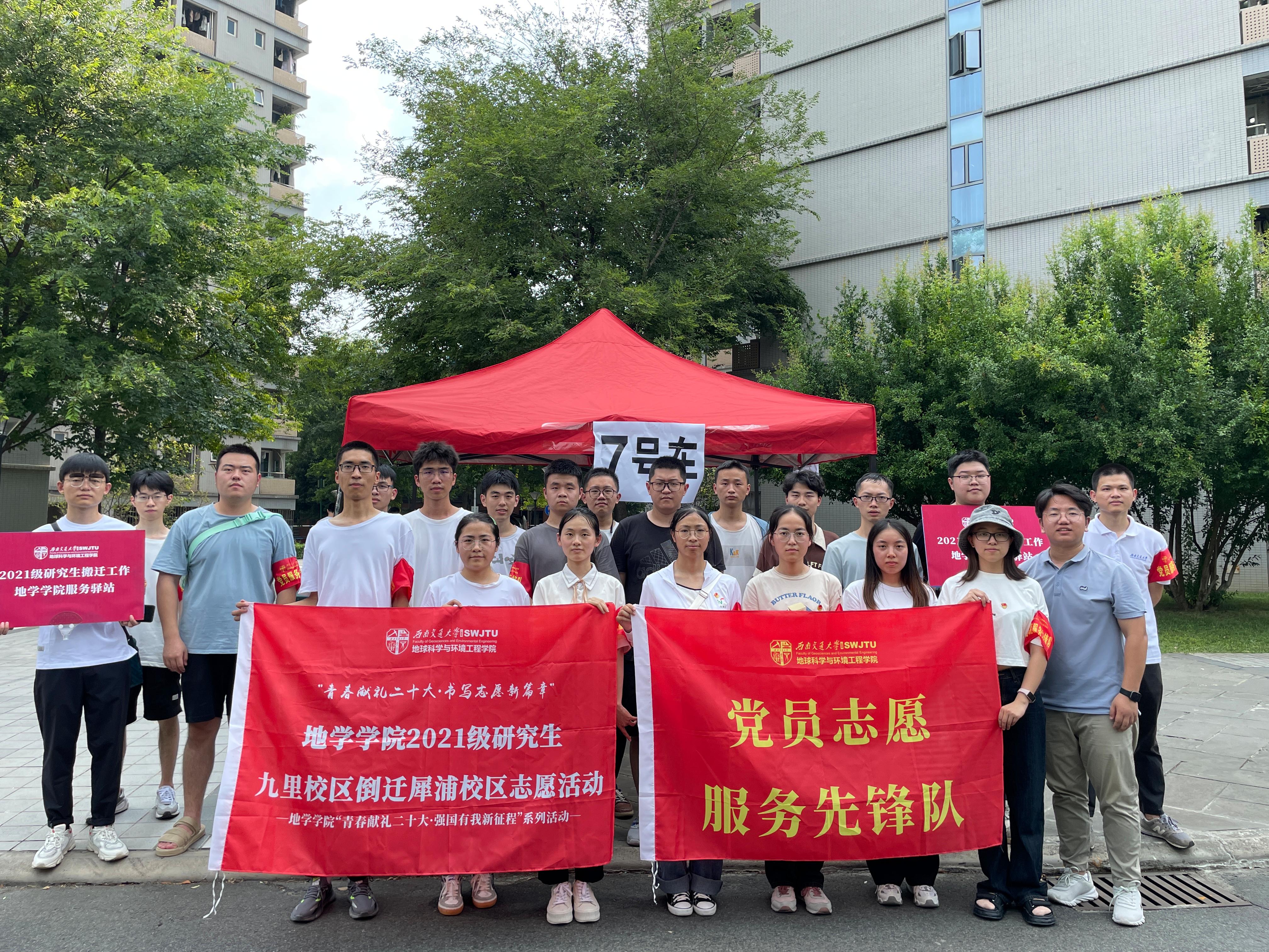 也提前面向全体学生招募了40余名志愿者,成立党员志愿服务先锋队,协助九里同学往犀浦搬迁时的各项物资搬运、寝室引导等工作。切实为2021级研究生提供便捷、温馨、暖心、有序的搬迁服务。