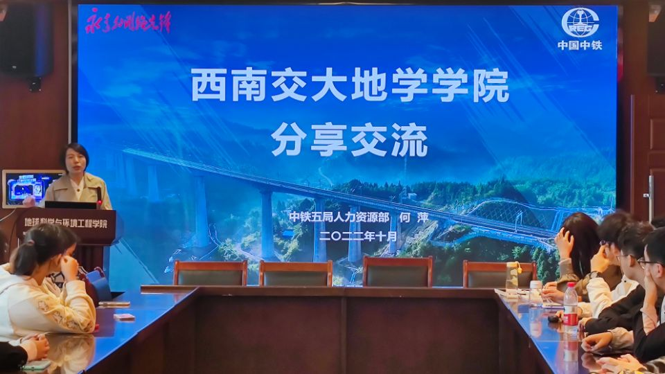 本次分享交流围绕就业形势、择业技巧、公司简介、人才培养四个方面展开。何萍指出,在后疫情时代,就业形势依然严峻,建筑市场仍然是国民经济的重要支柱,土木工程行业依旧处于黄金发展时期。她鼓励同学们要保持足够的信心,积极准备,拿出一份“漂亮”的简历,选择适合的单位“应考”,在面试中争取留下好的印象。何萍现场向同学们展示了中铁五局的企业风貌、人才队伍建设与培养,并表示中铁五局与交大渊源颇深,实力雄厚、海纳百川、敢于担当、富有温度是它的代名词,日后也欢迎交大学子的踊跃加入。