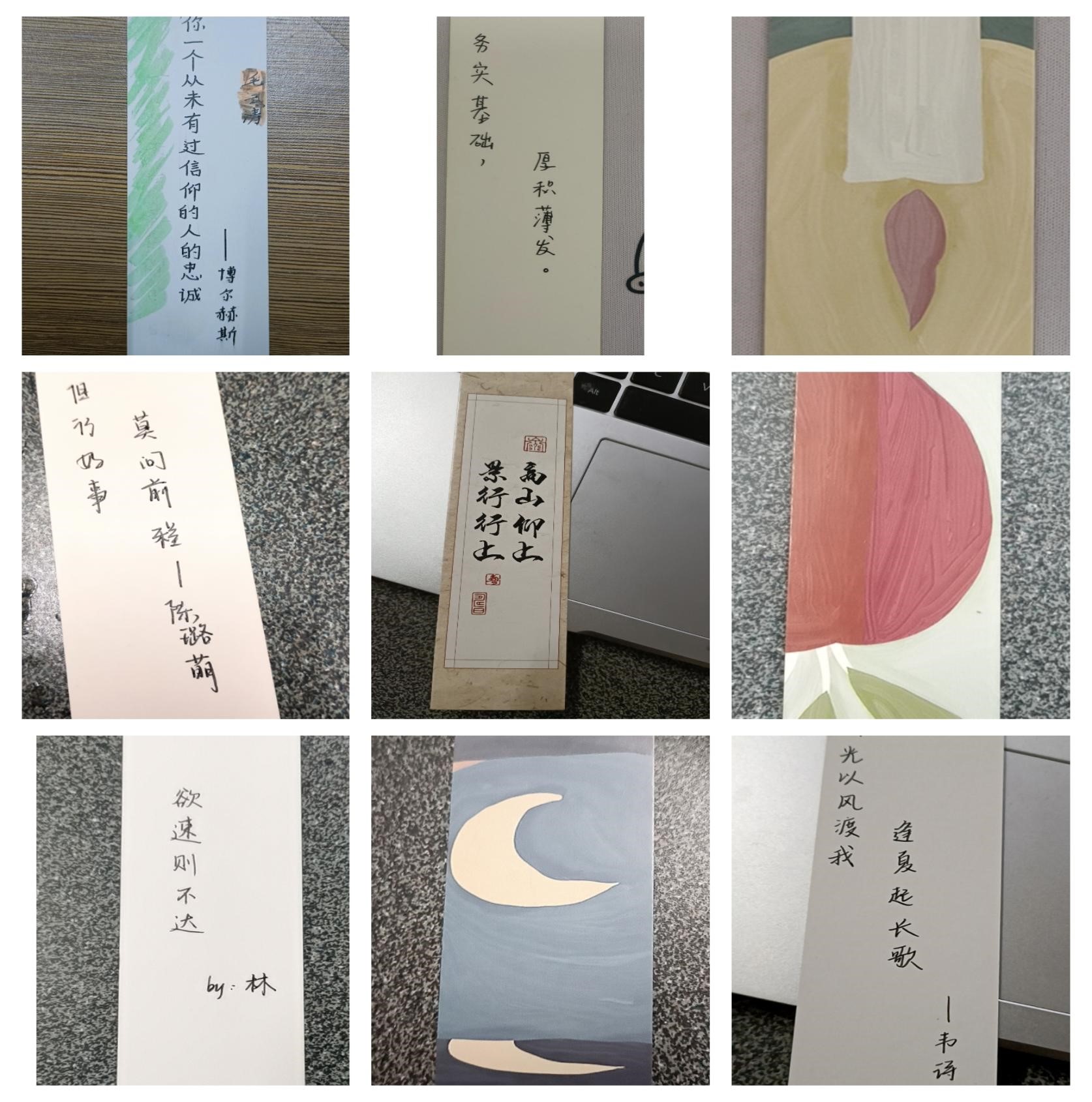 本次活动中,学习与科创中心于活动指定地点放置了书签盒,盒中存放活动所需书签,并放有空白书签供同学们发挥创意自行设计书签样式。在同学们自己动手设计书签并装饰自习室的过程中,不仅提升了动手创造能力,而且展现了当代大学生的精神风貌与美学素养。