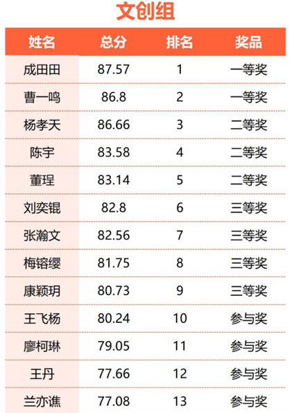最后在统计完所有参赛选手的得票数后由主持人公布获奖选手,本次大赛工评选出28份优秀作品,其中图文组15份,文创组13份。