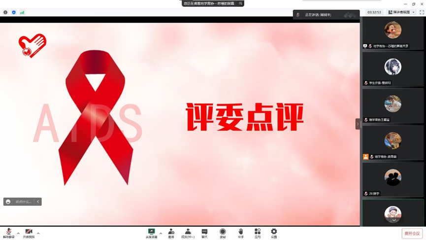 当日19:00,于腾讯会议线上举办了防艾作品宣传大赛的答辩。校学工处党委学生工作部刘颖老师,校团委罗洪老师,地球科学与环境工程拉斯维加斯娱乐城