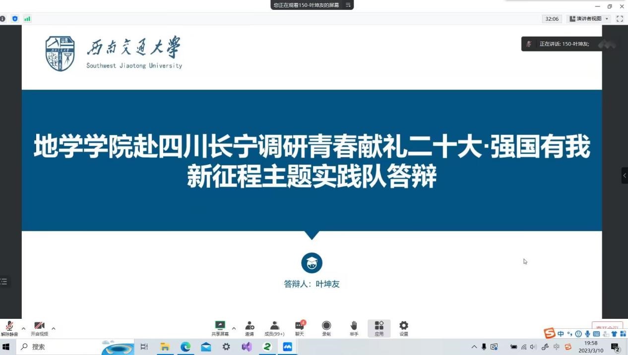 其中,实践150队代表叶坤友同学向大家展示了赴四川长宁的调研结果。