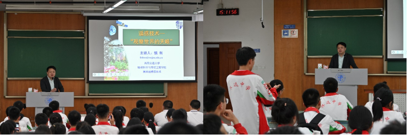 之后,慎利老师对遥感技术进行了科普介绍。他从遥感的定义出发,以相机为喻,深入浅出地解析遥感技术原理,并在一系列示例与问答中让同学们对这门技术有了更加深入的认识。最后,他向同学们分享了自己的高中经历,呼吁同学们在学习中适当停下来思考,保持专注与毅力。