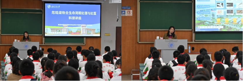 首先,由环境科学与工程实验教学中心王冬梅老师进行“危险废物生命周期与处置”相关讲座。王冬梅向同学们阐述了危险废物的定义,并通过“危险废物全生命周期处理虚拟仿真实验”,结合视频介绍与操作演示,生动形象地再现了固体废物处理的全过程,引起同学们的热烈讨论。
