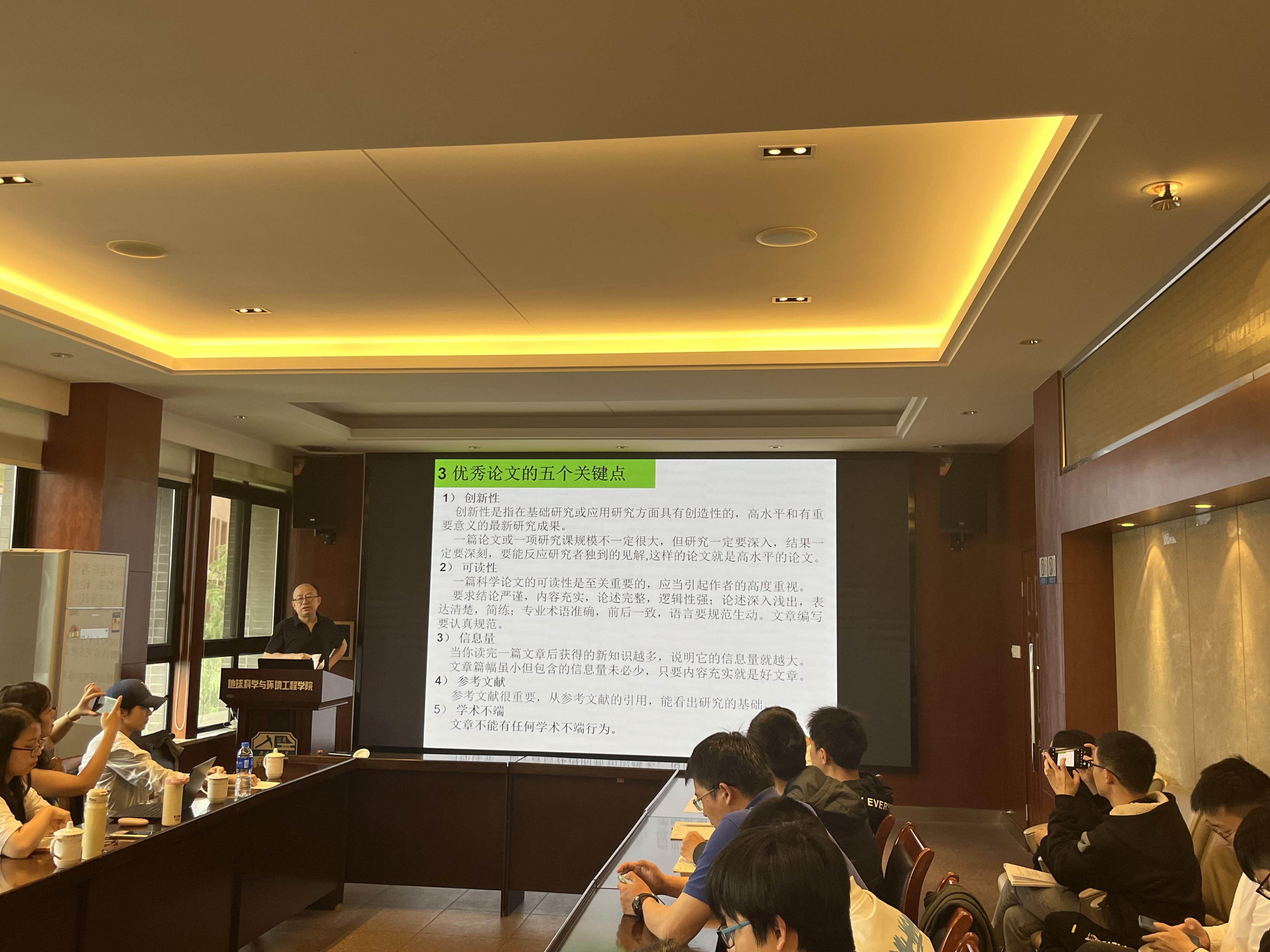 论文既是探讨问题进行学术研究的一种手段,又是描述学术研究成果进行学术交流的一种工具,如何写好一篇科技论文是广大师生一直关注的问题。作为资深的审稿人,袁志祥教授从作者、编辑、审稿人三个角度深入探究了如何写好一篇科技论文。首先袁教授为师生讲述了科技论文的基本概念、关键要素、常见问题和注意事项,其次从作者角度指出了写作前应思考的问题、如何选题、如何突出文章的创新点和提高文章的可读性,然后从编辑和审稿人的角度谈论了论文成果的相关问题,最后提出了论文写作的相关建议。袁教授引用了丰富的实例、数据和相关资料讲述了如何撰写优秀的科技论文,极大地开拓了研究院和实验室师生在学术论文写作领域的视野,为同学们今后日常积累、论文撰写、投稿发表等提供了很大的启发和帮助。