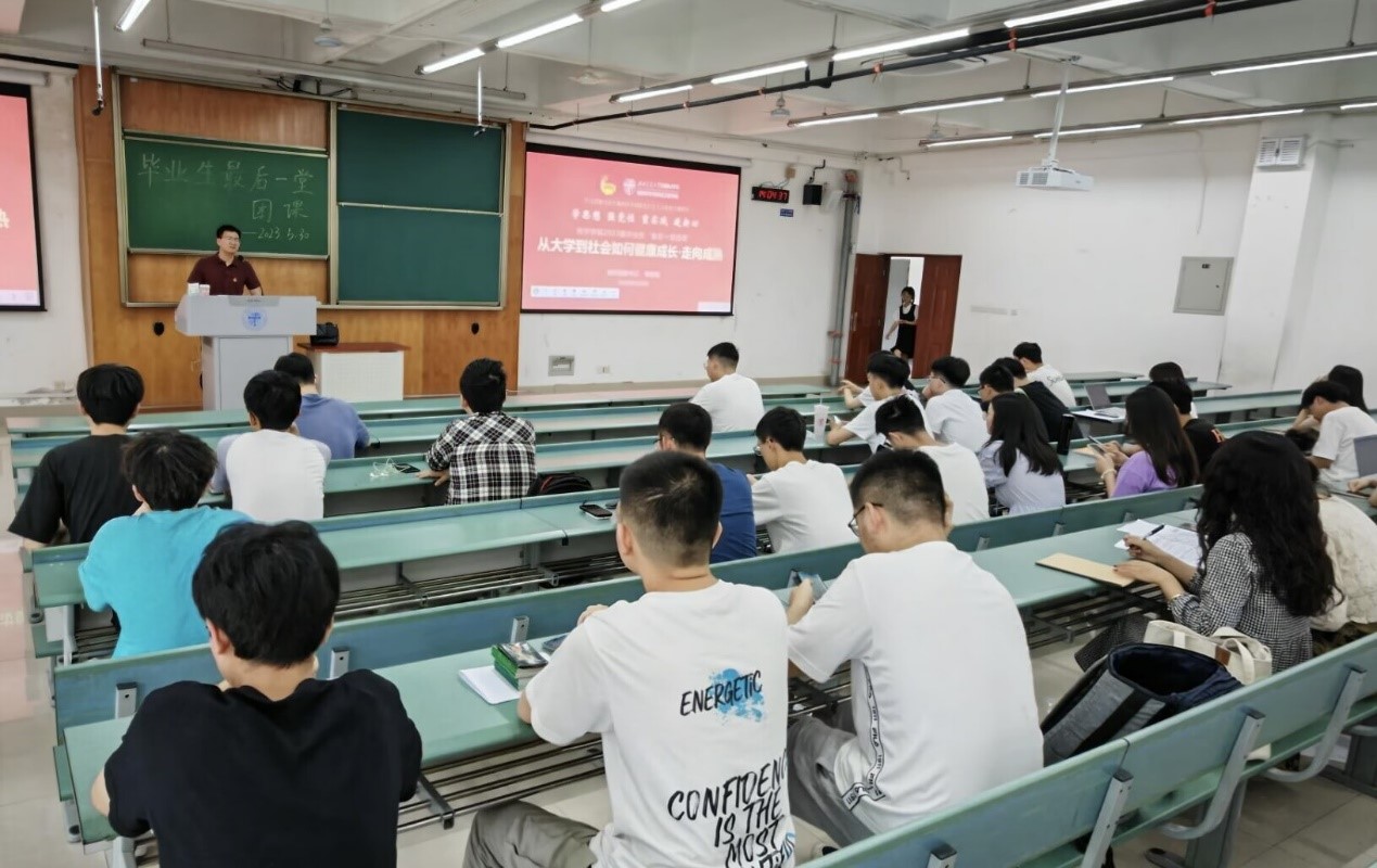 团委书记杨都强老师主讲“从大学到社会如何健康成长·走向成熟”专题讲座;第二部分,团建中心指导老师张婷开展毕业生团组织关系转接工作相关指导。
