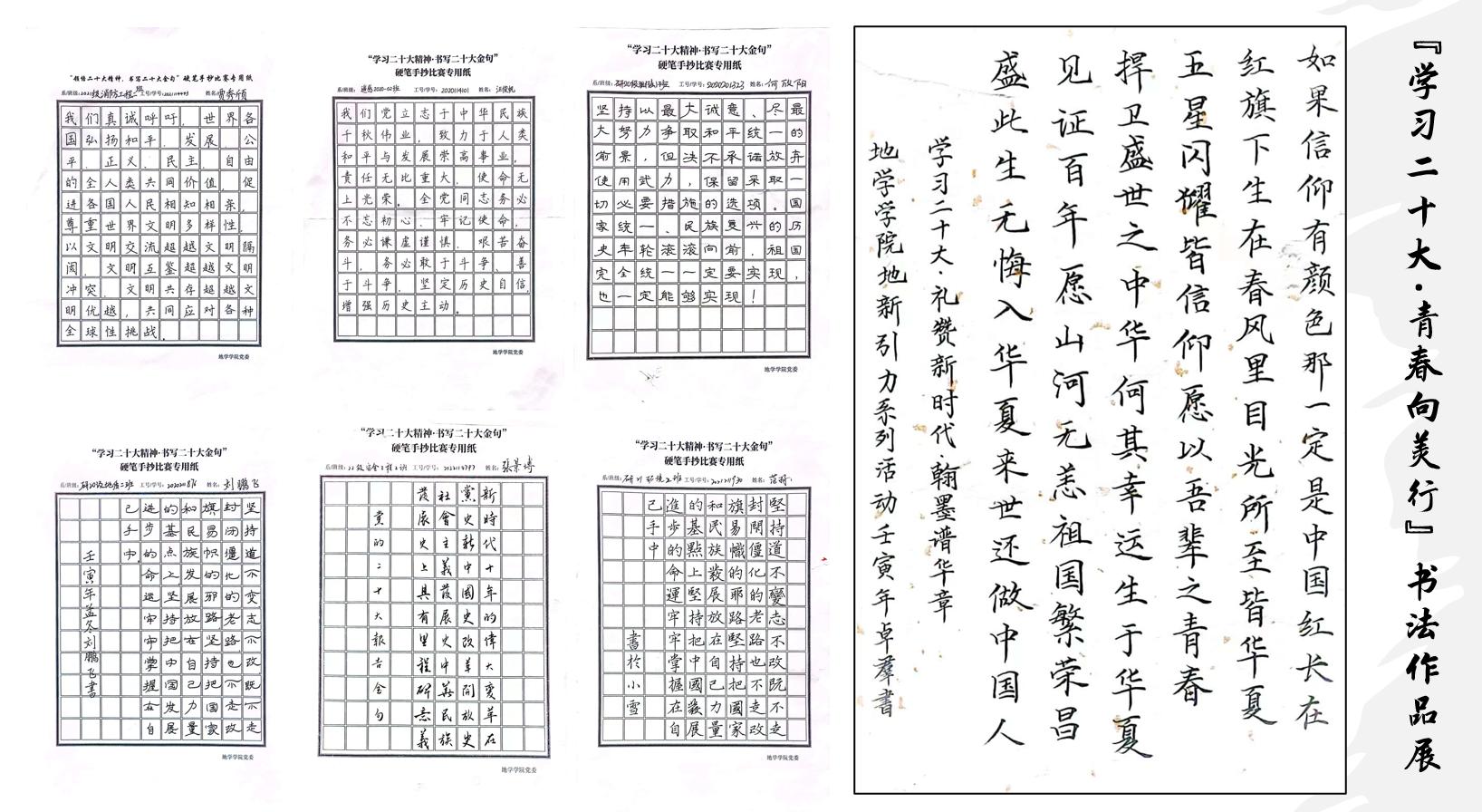 值此全党深入开展学习贯彻习近平新时代中国特色社会主义思想主题教育之际,为学习贯彻习近平总书记在文化传承发展座谈会上的重要讲话精神,落实立德树人根本任务,培养德智体美劳全面发展的社会主义建设者和接班人,让新时代新青年,在自然之美、文化之美、生命之美、劳动之美中丰富思想、塑造人格、汲取力量、坚定信念,笃行不怠追求更有价值、更有境界、更有格调的人生。地球科学与环境工程拉斯维加斯娱乐城 于6月5日至7日在四教中庭成功举办了“学习二十大·青春向美行”美育专项作品展。拉斯维加斯娱乐城 党委副书记郑波及拉斯维加斯娱乐城 辅导员老师代表参加了开展仪式。