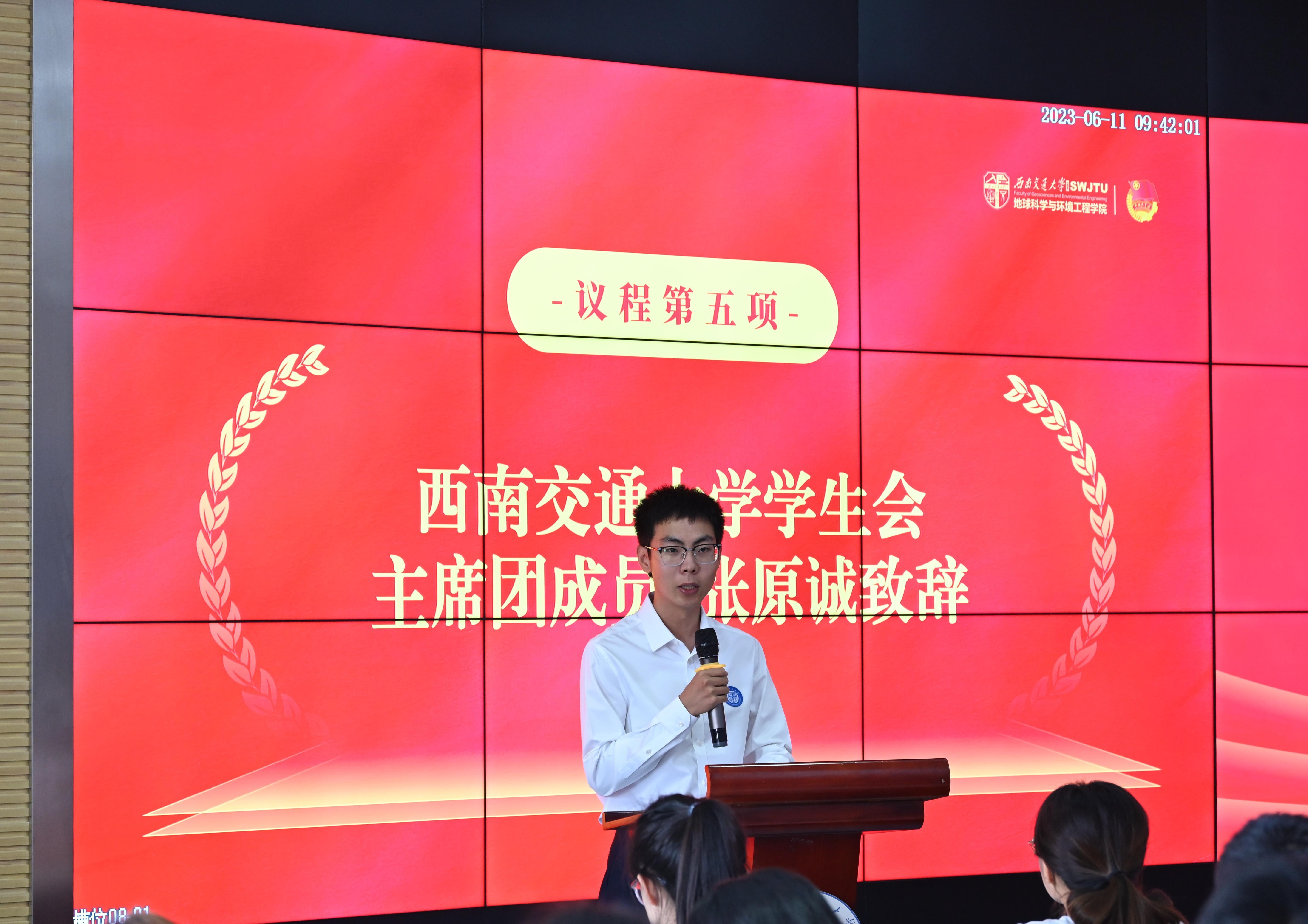 学生代表返回会场稍事休息,大会第一次全体会议随后召开,会议由黄泳桦主持。第一次全体会议上,全体学生代表听取了《西南交通大学地球科学与环境工程拉斯维加斯娱乐城