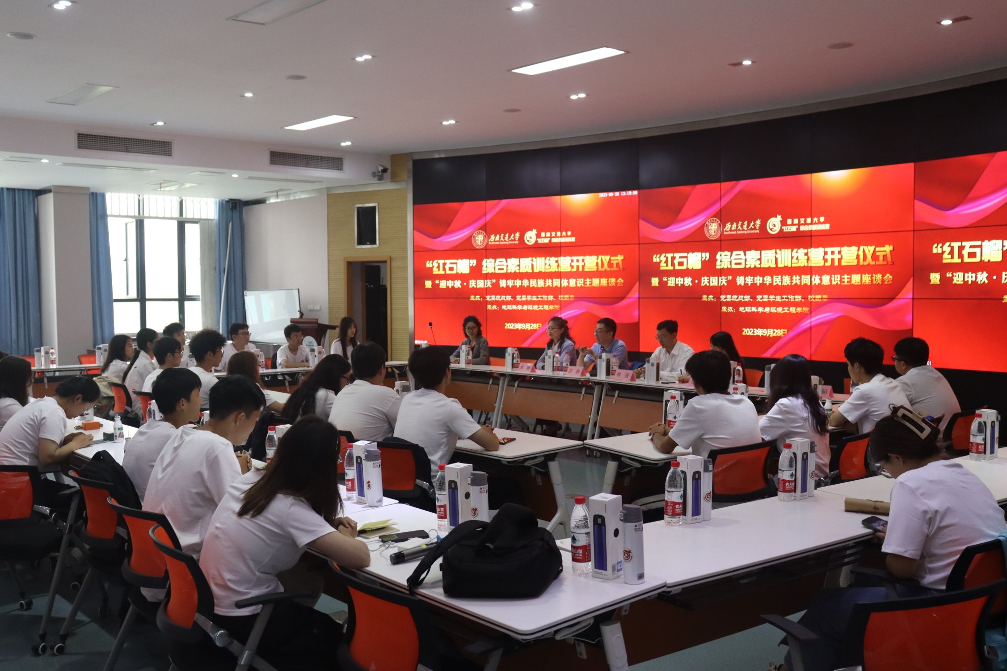 为了进一步加强铸牢中华民族共同体意识教育,9月28日下午,西南交通大学在犀浦校区举办“红石榴”综合素质训练营开营仪式暨“迎中秋·庆国庆”铸牢中华民族共同体意识主题座谈会。学校党委常委、党委统战部部长汪铮,地球科学与环境工程拉斯维加斯娱乐城