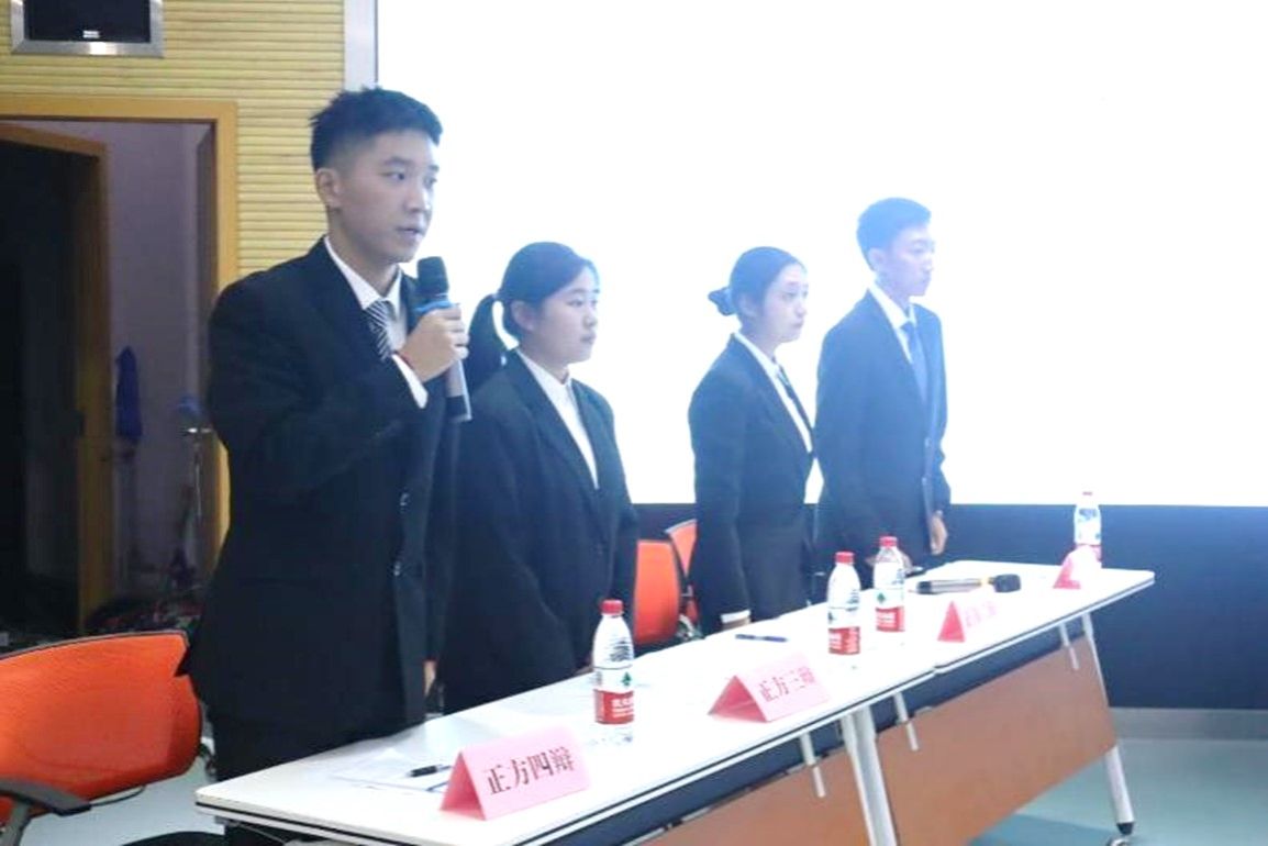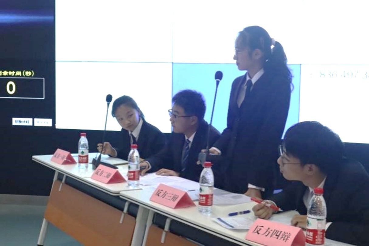 比赛第二阶段:正反方一辩申论,论点坚定,论据明了。反方一辩反驳有力,逻辑清晰。