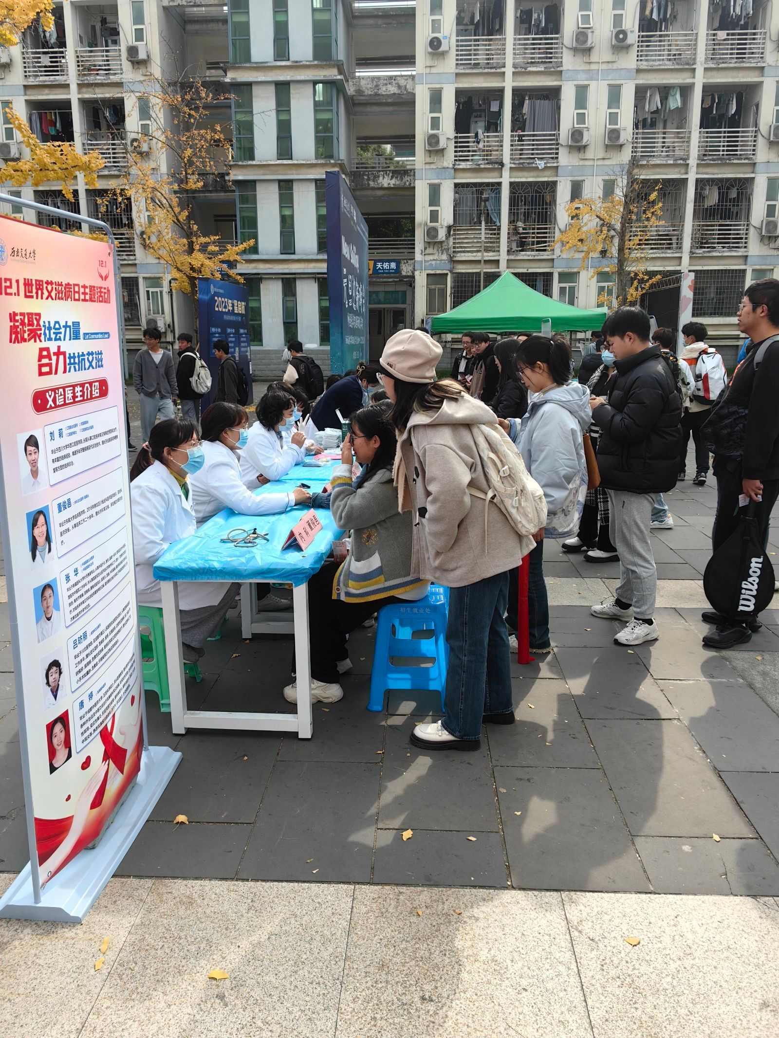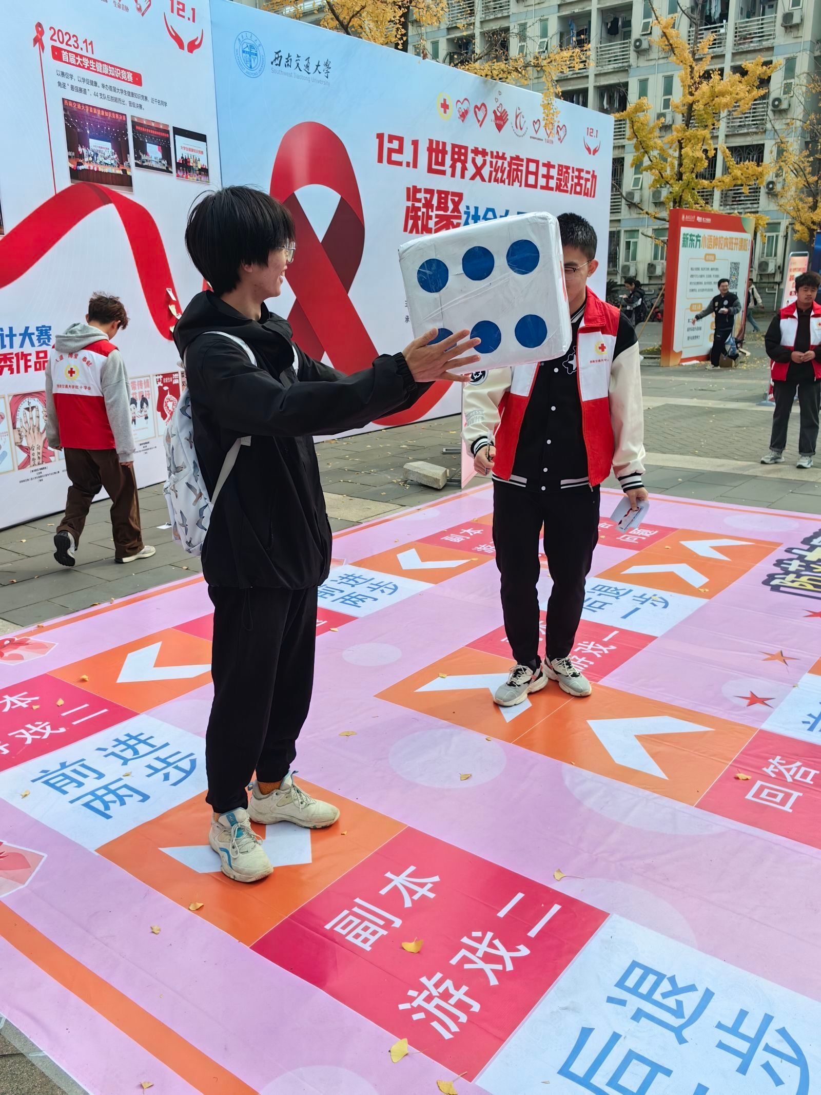 青协、校红十字会学生分会、青年志愿者联合会、园区自管委员会协办的西南交通大学世界艾滋病日活动紧张有序展开。