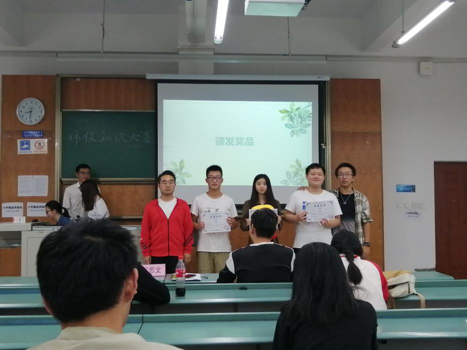 9月27日晚,地学青协于X4157教室正式举办2019年环保知识大赛的线下决赛,青协指导老师谷思文老师,青协会长秦璇睿、陈世贤等作为嘉宾一同出席本次比赛,十位选手的精彩表现得到现场观众的阵阵掌声,随后播放的环保宣传视频为所有人坚定环保信念,在激烈的角逐之后,杨大鑫、周彤岳、毕章青三位同学夺得本次比赛的前三名,谷思文老师为获奖选手颁奖,会长秦璇睿对本次活动进行总结致辞,至此,2019年交通公益环保知识大赛圆满结束。