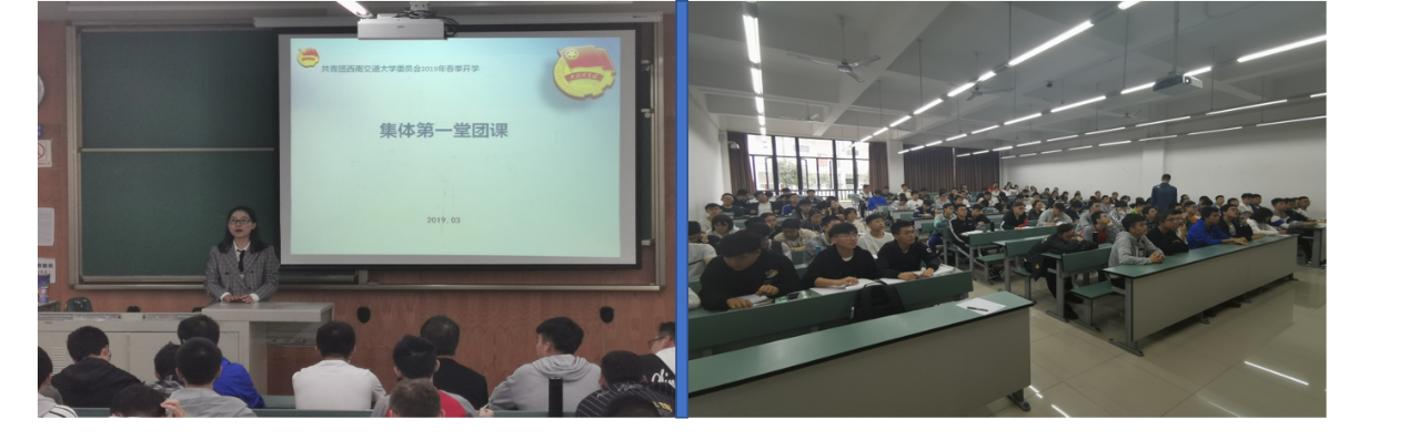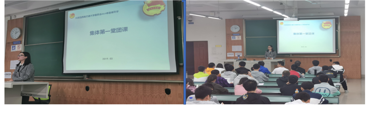 团委副书记翟琦老师在4157号教室开展集体第一次团课。地质工程一~四班同学全部参加本次团课
