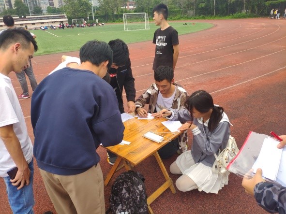 2019年9月26日星期四下午两点,本团支部于西南交通大学犀浦校区南区体育场举办了以“青春心向党,建功新时代”为主题的团日活动,2018级测工第一团支部成员都参与了本次团日活动。本次活动包含了4个项目,分别是