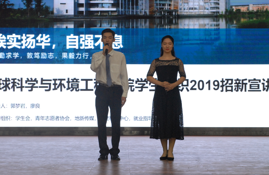 开场舞过后,学生会主席严榆凡代表学生会全体成员对新生们的到来表示欢迎,严榆凡表示,学生会是一个始终坚持“服务为同学,为了一切同学,为同学的一切”的学生组织,立足“自我服务,自我管理,自我监督,自我教育”的理念,为促进学生全面发展、丰富课余生活而不懈努力。接着学生会的部长们依次介绍了学生会办公室、科创部、活动部、体育部、宣传部、辩论队、文艺部、生活部、团建部、学习部共十大部门。部长们出色的宣讲迎来了同学们的阵阵掌声。