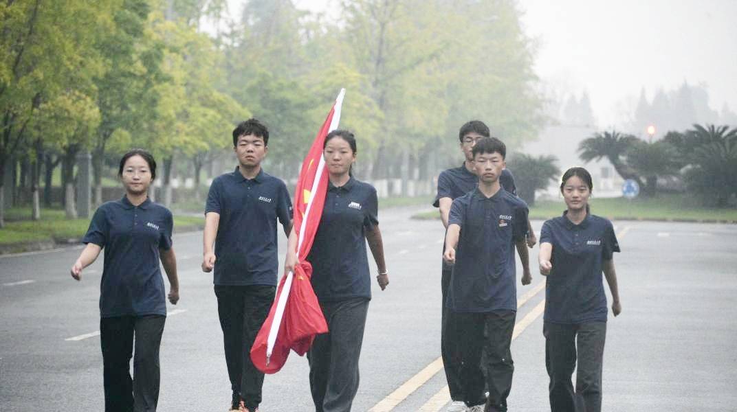 2024级新生同学们身着统一制服,英姿飒爽,迈着整齐划一的步伐,护送国旗入场。