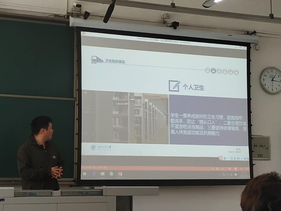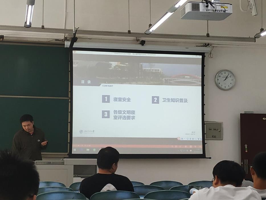 17级、18级各班权益与生活委员进行了培训。江金宸部长从寝室安全、卫生知识普及以及文明寝室评选这三个角度来为大家进行培训。