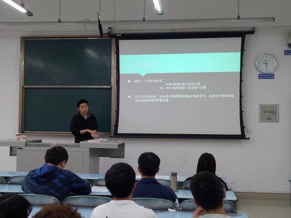 对2017、2018级宣传委员开展了本学期第一次培训,地新传媒新闻部的张弈辉同学为大家进行了新闻稿的写作培训。