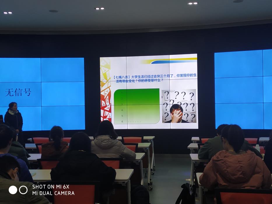 接着老师为我们讲解了如何适应。我们要相信自己,树立正确的自我形象,这是自我意识的基础,接受自己不足,保持积极的心态。老师让我们用关键词来形容自己的优缺点,并推测在别人眼中自己的形象,再用关键词来形容自己对未来的期待,通过这一方式,我们更全面地了解了自己。再者就是确立新的目标和追求,老师强调,自己制定的目标必须是可衡量的,有期限的,可行性要强。老师为我们设置了毕业后的情景,让我们设想那个时候我们人生的行囊中想拥有的东西,以此来确立自己的目标追求。此外我们还需要探索适合自己的学习方法,通过预习和请教,从个人实际出发逐步摸索与自己水平相适应的学习方法,掌握沟通技巧。老师为我们分享了“微笑、赞美、聆听”三件沟通法宝,要本着“想别人怎样对你,你就怎么对别人,明白别人的需要,适当给予所需”的原则。