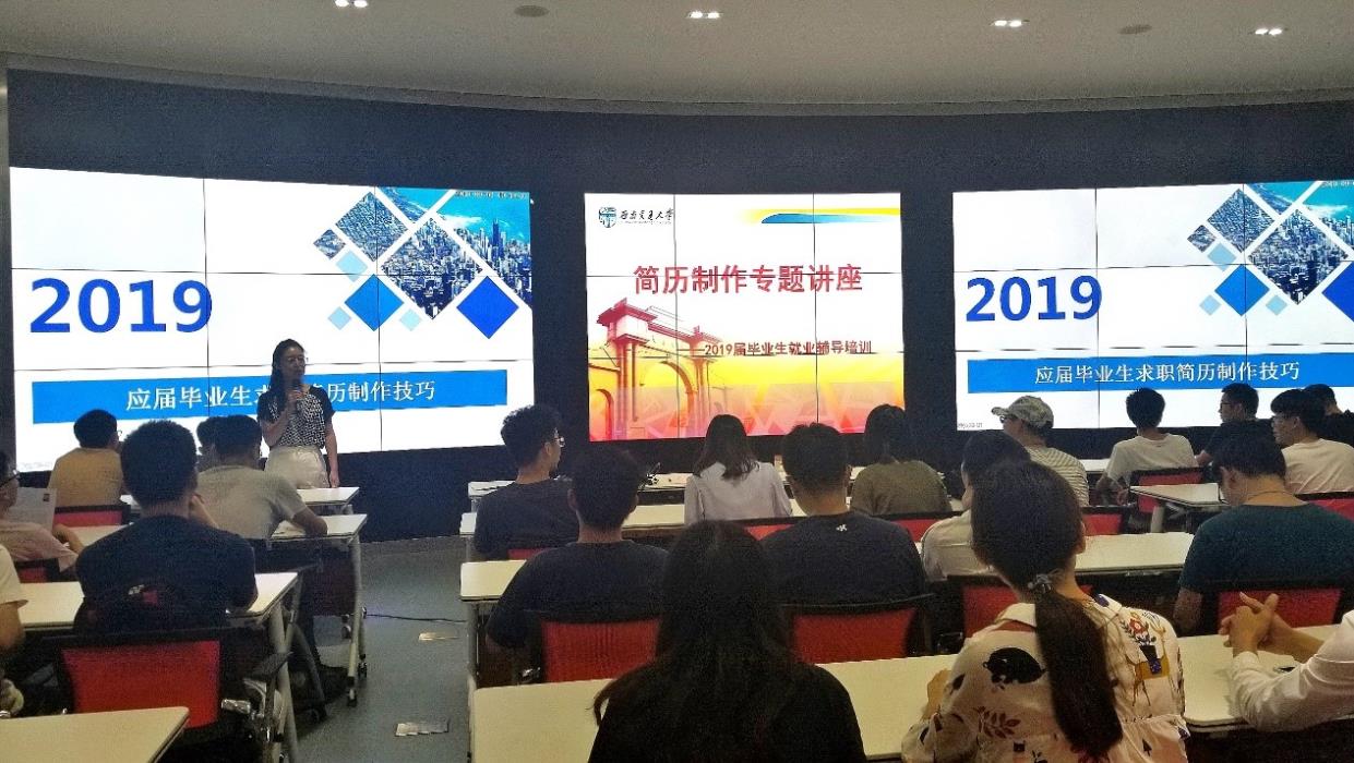 9月3日晚19:00,简历制作专题讲座正式开始,唐老师从求职简历概述、简历要素及撰写技巧、板式及注意事项、诊断经验总结四方面系统综合的讲述了简历的制作方法。一开场,唐老师就讲到“简历是展示推销自我的工具,要充分体现个人工作能力,证明自己对老板的未来价值,这对大学生来说十分重要。”演讲过程中,他不断提出简历标题、简历九要素、简历新要求等概念,用正反案例,带领同学们分析问题,揣摩HR招聘、筛选简历时的心理,提升同学们对不同公司、不同岗位的分析能力,教大家写出最合适的简历。