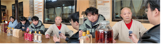 实践团队深入邛崃大梁酒庄,先后参观了酒庄内历史悠久的地下酒窖、古朴的水石碾作坊以及蒸汽氤氲的传统烧坊等核心酿酒场所,记录了工人师傅全手工制酒的过程。基地工作人员赵女士全程陪同并详细讲解了邛崃酿酒的完整流程,从高粱筛选到蒸煮发酵,从酒液蒸馏到坛装窖藏,每一道工序都凝聚着匠人精神与岁月沉淀。
