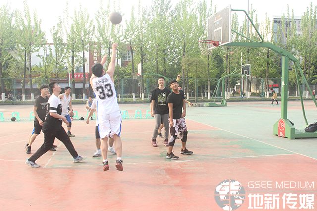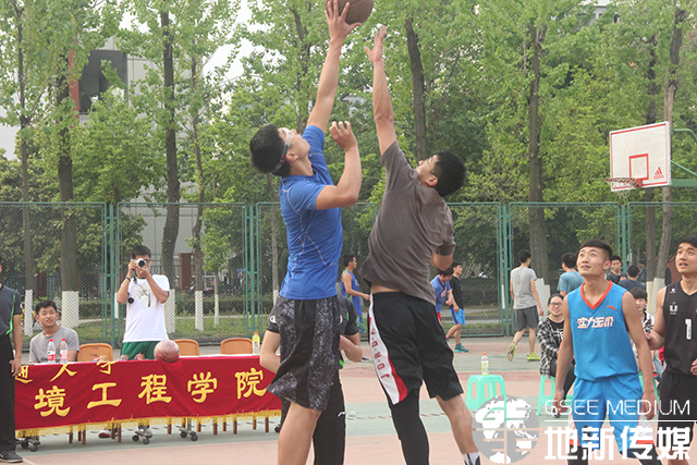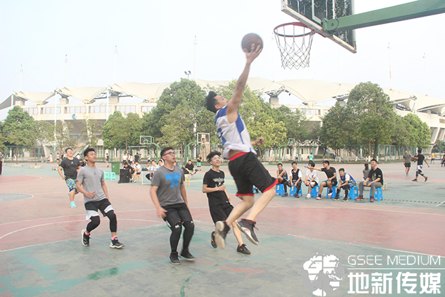 篮球赛决赛比赛拉开帷幕,两支队伍分别是蓝队14级地质专业代表队与黑队15级环境专业代表队。比赛开始,蓝队先进一球,之后比赛蓝队以17:2的比分优势遥遥领先。后黑队调整战术,奋起直追,上半场结束后的比分为23:16,黑队暂时落后。