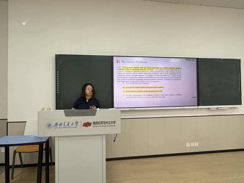 接着,牛小会老师带领同学们深入学习了OSU学术诚信相关规定,通过实际案例讲解,警示同学们坚守学术道德底线,杜绝学术不端行为。