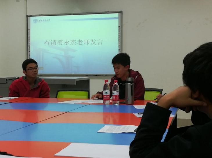 会议在轻松活跃的氛围中展开,翟琦老师致开场词。同学们讨论地质工程专业的就业前景,读研状况以及薪资待遇。之后三个小组分别讨论分享成员间查阅搜集到的资料,并由组长进行总结。