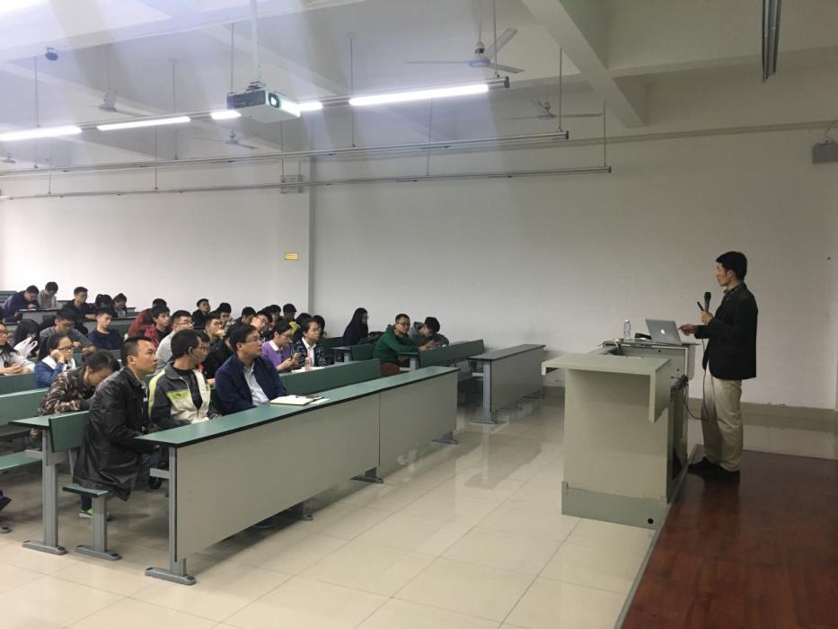 陈光耀专家首先介绍了在学校中最容易发生安全问题的时间和地点,强调了学校实验室的特殊性,如大功率电器的使用,试剂、危险设备及操作,材料堆放和实验生物等。列举了因线路短路、私拉乱接电线而引起火灾,造成惨痛代价的事例。通过观看视频引起大家的注意力,使大家更好的留意消防设施以及提高消防意识。接着,陈光耀专家为同学们讲述了常见的火灾种类以及常用的灭火方法,现场演示了灭火器的正确使用方法,使用前要检查灭火器罐体是否膨胀、锈蚀,使用时要先拔去安全销等。介绍了消防安全“四个”能力建设,深刻的讲解了应对火灾的自救方法,通过迪拜高楼火灾“零死亡”事例强调火灾自救的重要性。陈光耀专家一直深入浅出的讲解这些知识,并且很好的和师生进行交流互动,更好的吸引大家的注意力和提升大家的自我保护意识。