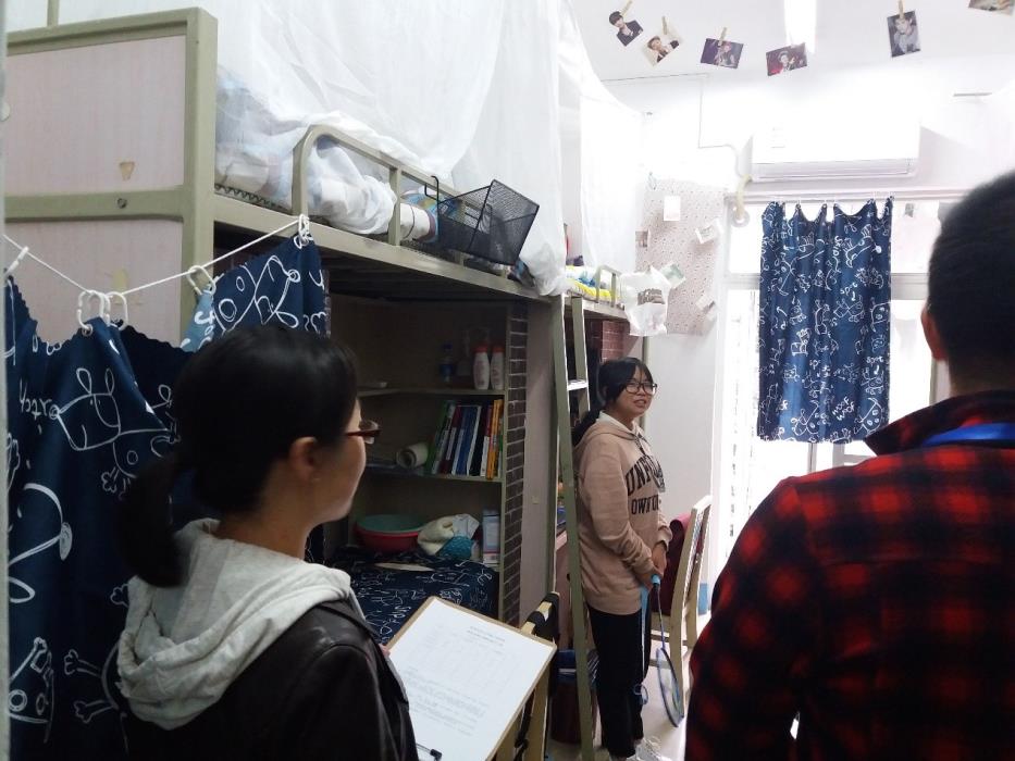 学生会部长随行,对参加初赛的寝室进行了打分评比。