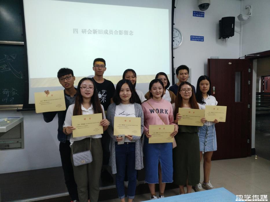 随着受聘仪式的进行,颁发聘书结束后,研会新旧成员集体合影,以及后续也完成了各部门的工作交接。当然研会新成员们饱满的精神状态和坚定的工作信念展现出的是地学研会集体的生机与活力;相信在新成员们的不懈努力下,地学研会会成为更加优秀的集体。