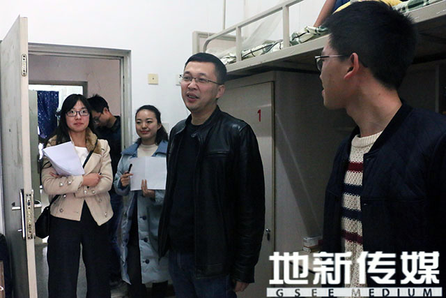 在寝室,傅尤刚书记与同学们进行了亲切的交流,从门墙之间的缝隙到同学们的饮食,特别建议,少吃泡面等不健康的食品,无微不至,充分体现傅书记了对同学们生活深深的关怀。在走访宿舍时,傅书记对寝室卫生标准做出了详细的要求。傅尤刚书记对特别优秀寝室进行了表扬,并对需要改进的寝室提出改进意见。