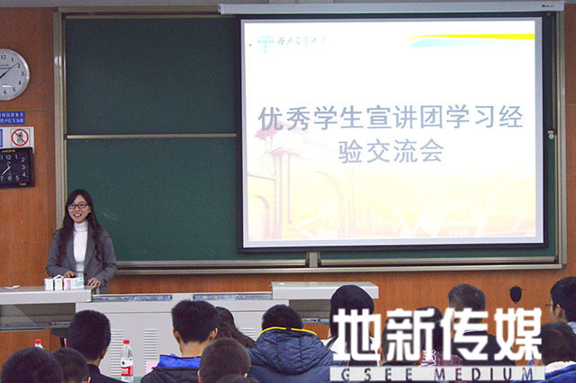生态环境研究中心,在2014年至2015年多次获得西南交通大学综合奖学金,在各类学科竞赛中屡获佳绩,同时他还积极参加各类课外活动和学校社团。孙波分别在四个方面与同学们进行了经验交流。第一方面是关于专业学习。孙波认为无论是保研还是工作,学习都是很重要的。针对基础课程和各类专业课程,孙波分享了自己的四点学习经验:一、上课认真听讲。他指出上课认真听讲是一种能力,跟上老师的节奏,梳理自己的思路才是最快的进步;二、克服懒癌。如何治愈好多大一同学患上的懒癌这种青春病,孙波认为最重要的树立目标和明确喜好才能激发自己的动力,从而激励自己付诸行动最终治愈懒癌;三、复习计划。针对如何在有效的在期末前进行有效的复习,孙波学长和同学们分享了自己的考前复习计划,给出了关于时间安排、时间分配、复习内容等方面的具体意见;四、梳理重点。孙波认为准确把握考试重点才能轻松应对考试。第二方面是有关学科竞赛的内容。孙波说:”无论什么比赛,注重过程,重在参与。”孙波认为,要理性的参加各类比赛。不管能不能获奖,参加过的比赛会让自己的阅历更丰富,会成为面试中的加分项,也会让大学生活更加充实。对于竞赛类型的选择,孙波给同学们提出了中肯的意见:不要盲目的参加比赛,参加与本专业有关的,或者是自己感兴趣的,如果参加了,就尽力去做,体验这个过程,结果输赢只是暂时的,从中获得的东西是永久的。第三个方面是科研训练,科研训练是将专业知识运用与实践的第一步。孙波和同学们分享了自己的科研经历,并且给同学们推荐了各类适合自己的科研训练。第四个方面是关于课外拓展方面。大学,不止为学习。孙波讲述了自己的课外生活和学校的社团任职经历。接着孙波讲述了自己对于大学的看法,他强调大学,不止为学习,课外生活也是非常丰富的,做自己想做的事,做自己感兴趣的事,不仅拓宽了自身的横向发展,同时也丰富了自己的课余生活,更重要的也是结识了一群志同道合的朋友,大学四年很短,但这些都可以是一生的记忆。且行且珍惜。对于每个同学都会面临的选择读研还是工作的问题,孙波认为最重要是做自己。在最后,孙波学长送给了同学们一句话:无愧于人,无愧于心。