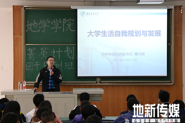 党委副书记傅尤刚主讲“如何成为一名优秀的学生干部”。