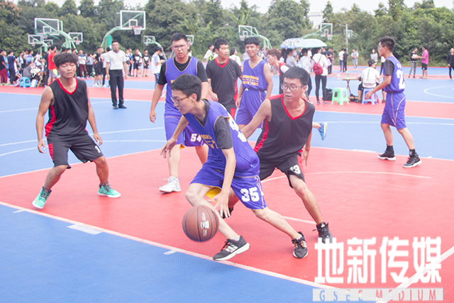 院党委副书记傅尤刚、2016级辅导员翟琦老师和李婧老师亲临现场,为广大运动员同学加油助威并积极鼓励更多的同学参加这次篮球赛,以达到强健体魄与增进友谊的双重效果。第一场球赛是环境5班与地质1班的对决。环境5班队员身着紫色队服,地质1班身着黑色队服。最终环境5班以23:15战胜地质1班,获得了首胜。