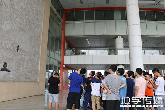 大使团成员正在介绍“竢实扬华”浮雕墙