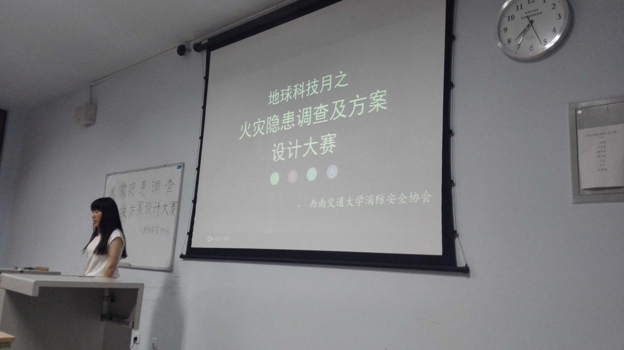 近年来,各个大型公共场所(比如各个高校,地铁站,商场,电影院,KTV,工厂等)时有火灾事故发生,尽管消防部门已经加大检查力度,但仍有一些地方依然存在火灾隐患。为了增强我校同学的消防安全隐患意识,丰富动手实践的能力,锻炼同学们利用专业知识解决现实问题的能力,消防安全协会借“地学科技月”之际,于2016年5月12日晚在X9350举办“火灾隐患调查及解决方案设计大赛”赛前宣讲会。