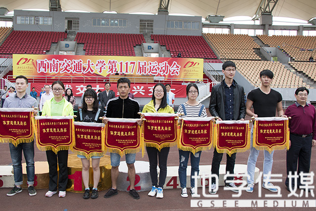 4月16日下午四点,我校第117届阳光体育运动会闭幕式在犀浦校区北区体育场正式开始。学校党委办公室主任甘灵、校团委朱剑松书记等学校主要领导出席了本次闭幕式。我院部分师生代表也积极参与其中。
