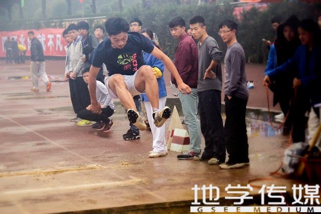 “拼搏只为更远,健儿奋勇向前。”这是对2015年校运动会跳远运动员的赞扬,天上降落的绵绵细雨丝毫不能阻挡他们的腾空一跃。一道优美的弧线,身已来到几米开外,他们的矫健可见一斑。今天的比赛更是激烈异常,经过初赛与决赛的一次次飞跃的比拼,运动员们争锋相对的同时也赛出了热情,赛出了风采,赛出了友谊。