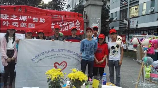 青年志愿者协会承办的“废品换鲜花”活动在二、四食堂门口展开了活动。