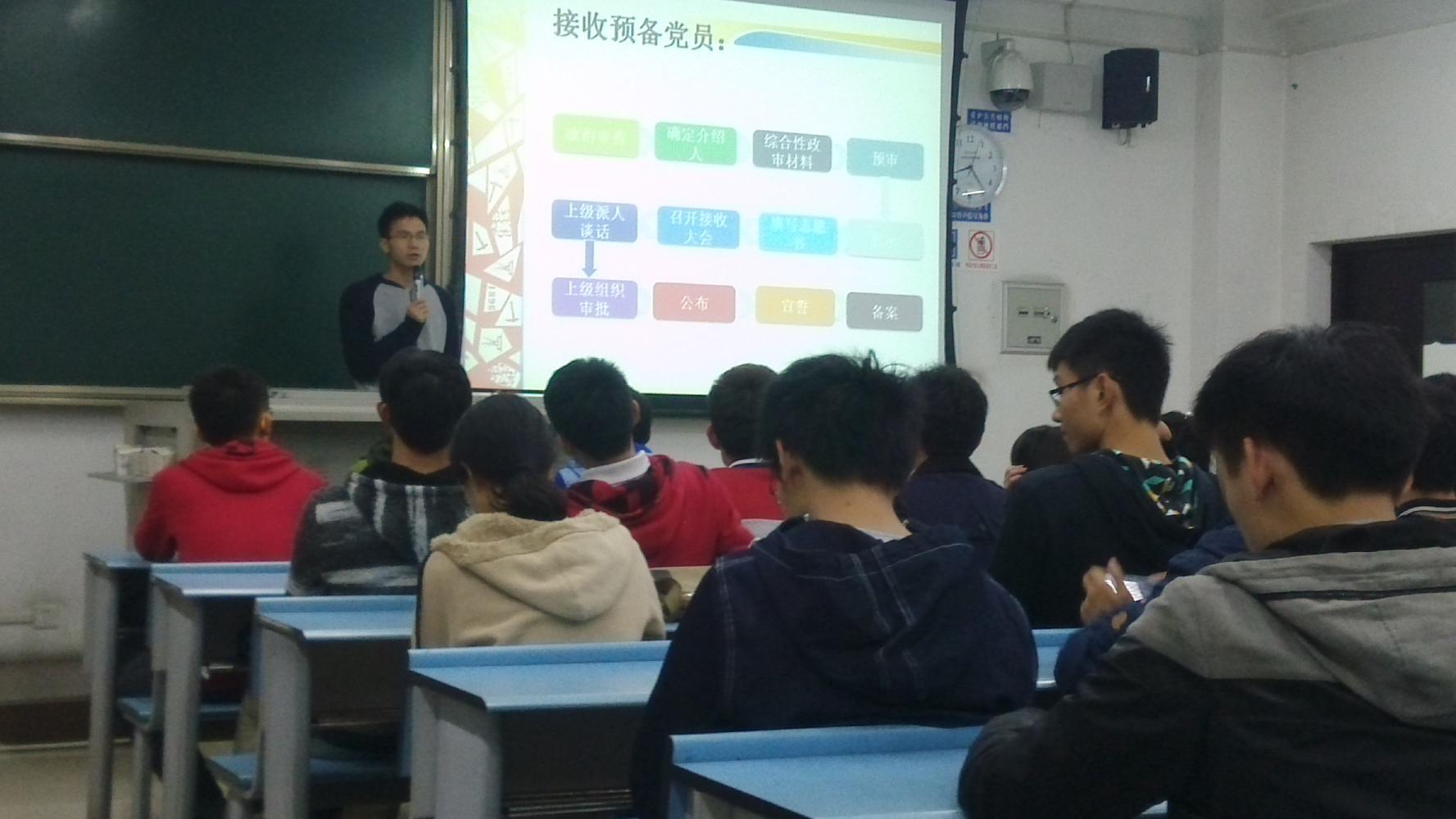 本科14级党支部组织生活座谈会在X2526教室召开,本科14级党支部书记杨都强、副书记王绪国及其他2014级的党员、预备党员、积极分子六十余人参加了此次座谈会。